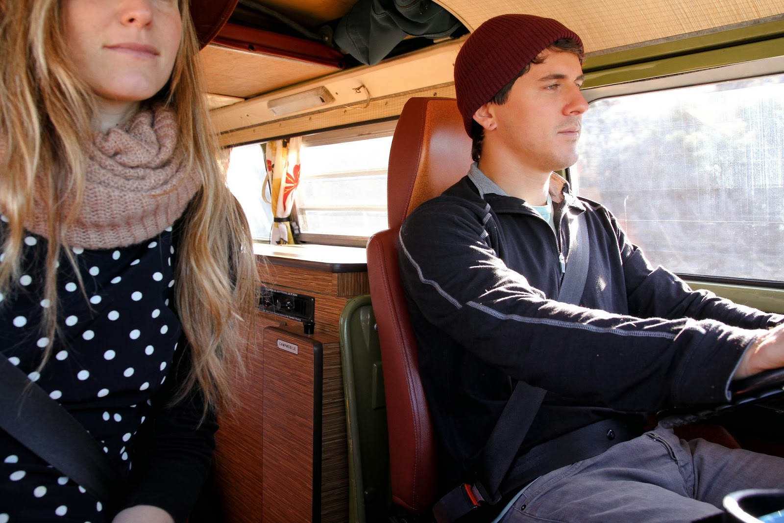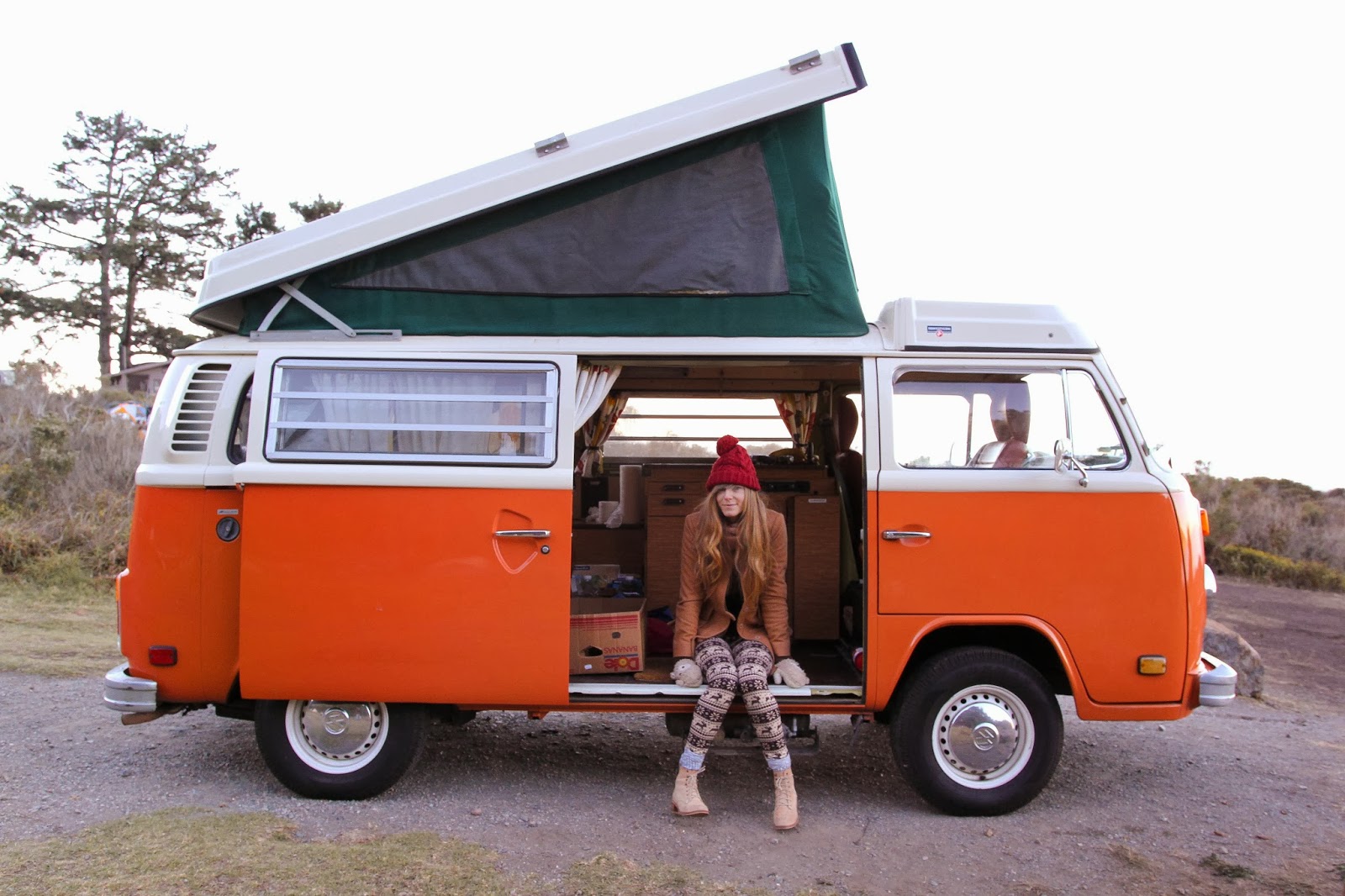 We camped at this beautiful campground called Kirk Creek in Big Sur. It was up there on my list of prettiest places i've ever been to. we parked Sunny D right on the edge of a cliff and slept looking out at this view. if this isn't living... i don't know what is! my best friend sara and i thrifted polka dotted getups from this vintage store in LA to match. How can you drive in a 1970's van if you aren't in vintage? you just can't.